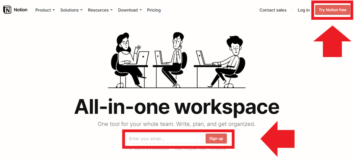 初めて利用される方は、NotionにSign upする必要があります。