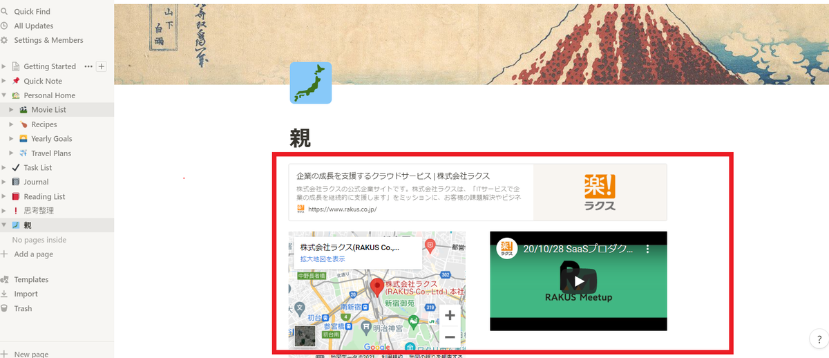 その他、URLのブックマーク保存、Googlemap、YouTubeやgsuiteのドキュメント・スライド・スプレットシート、PDF、などの埋め込みもできます。