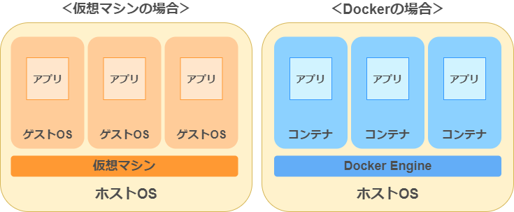 両者の違いを簡単にまとめると、- 仮想マシンを用いた場合: