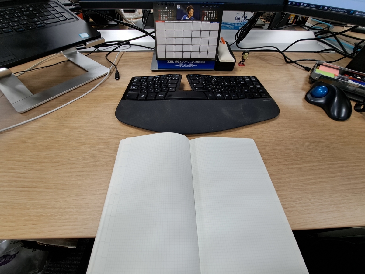 それは、キーボードが長方形じゃないので意外と机上の場所を取るというのと、キーボードの前に手帳を置いて作業をしているのですが、それが使いづらいのです。