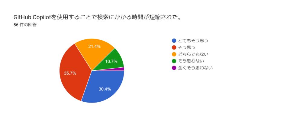 66.1%のエンジニアがGitHub Copilotにより検索時間を短縮できたと回答しました。