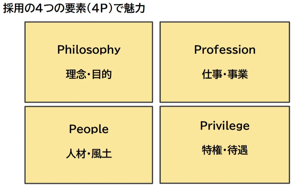もし採用に携わっている方がいれば、この「4P」をアジェンダとして使うのはおすすめです。