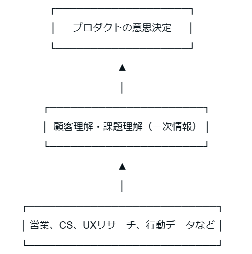 上の段に行くほど “PdMである必要性が高まる” のですが、意思決定の源泉が 顧客の一次情報 である以上、